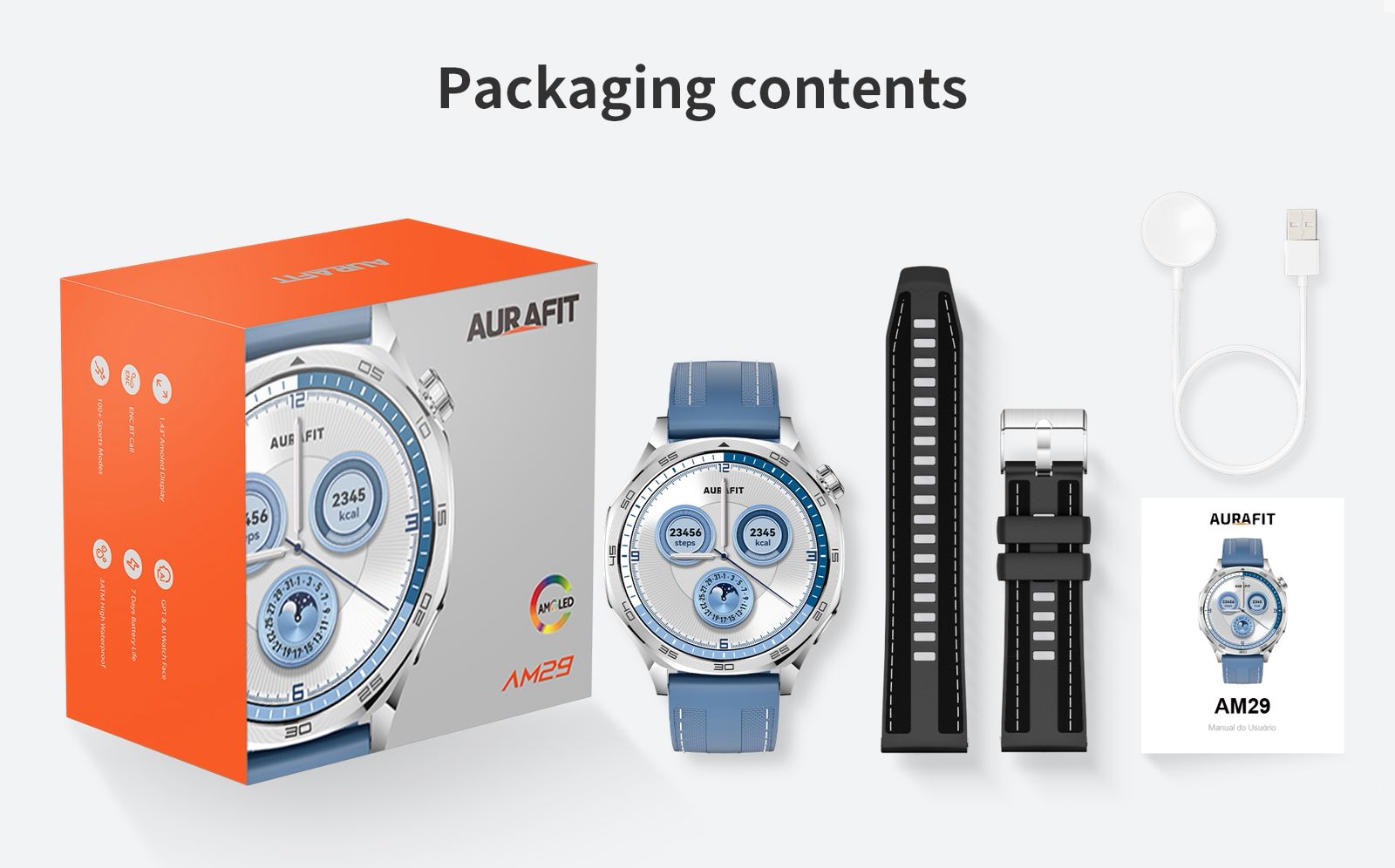 The Aurafit AM29 combines premium build quality, cutting-edge fitness features, and seamless smartphone integration.