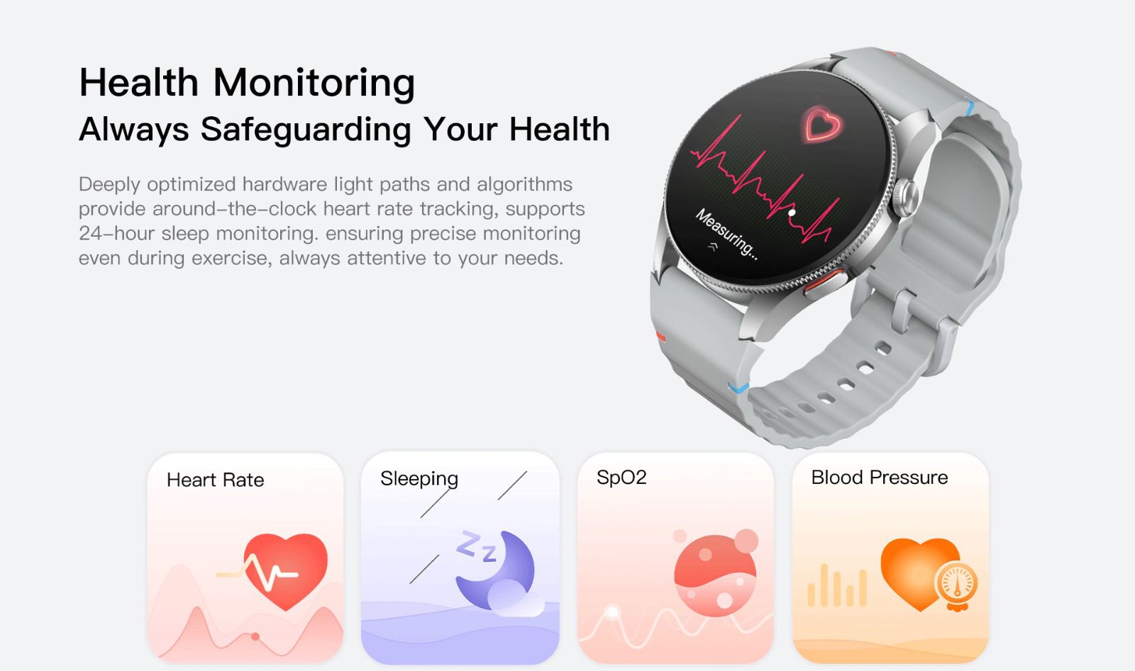 π« Comprehensive Health Monitoring β Track heart rate, SpOβ, sleep patterns, and stress levels.
