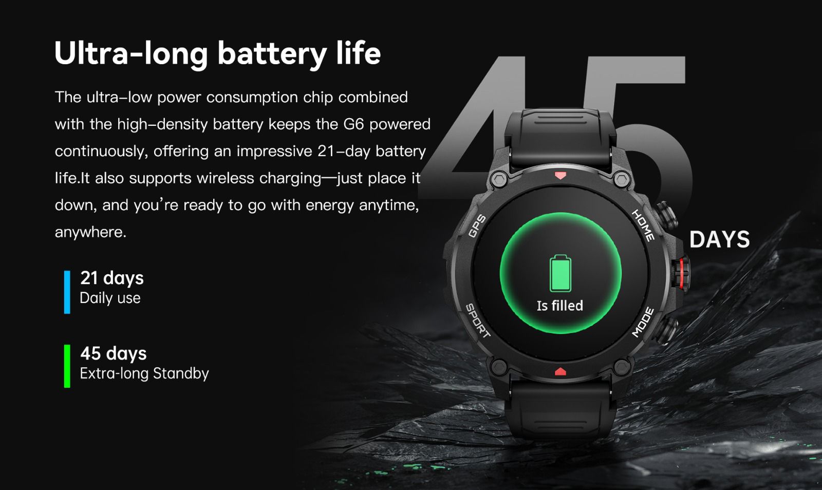The G6 combines cutting-edge health tracking, sleek design, and powerful smart features to keep you connected and motivated. Perfect for fitness enthusiasts and everyday users who want a balance of performance and style.
