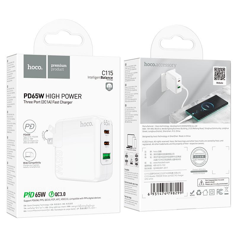 C115 Header PD65W 3-Port Fast Charger (2C1A) – US Plug