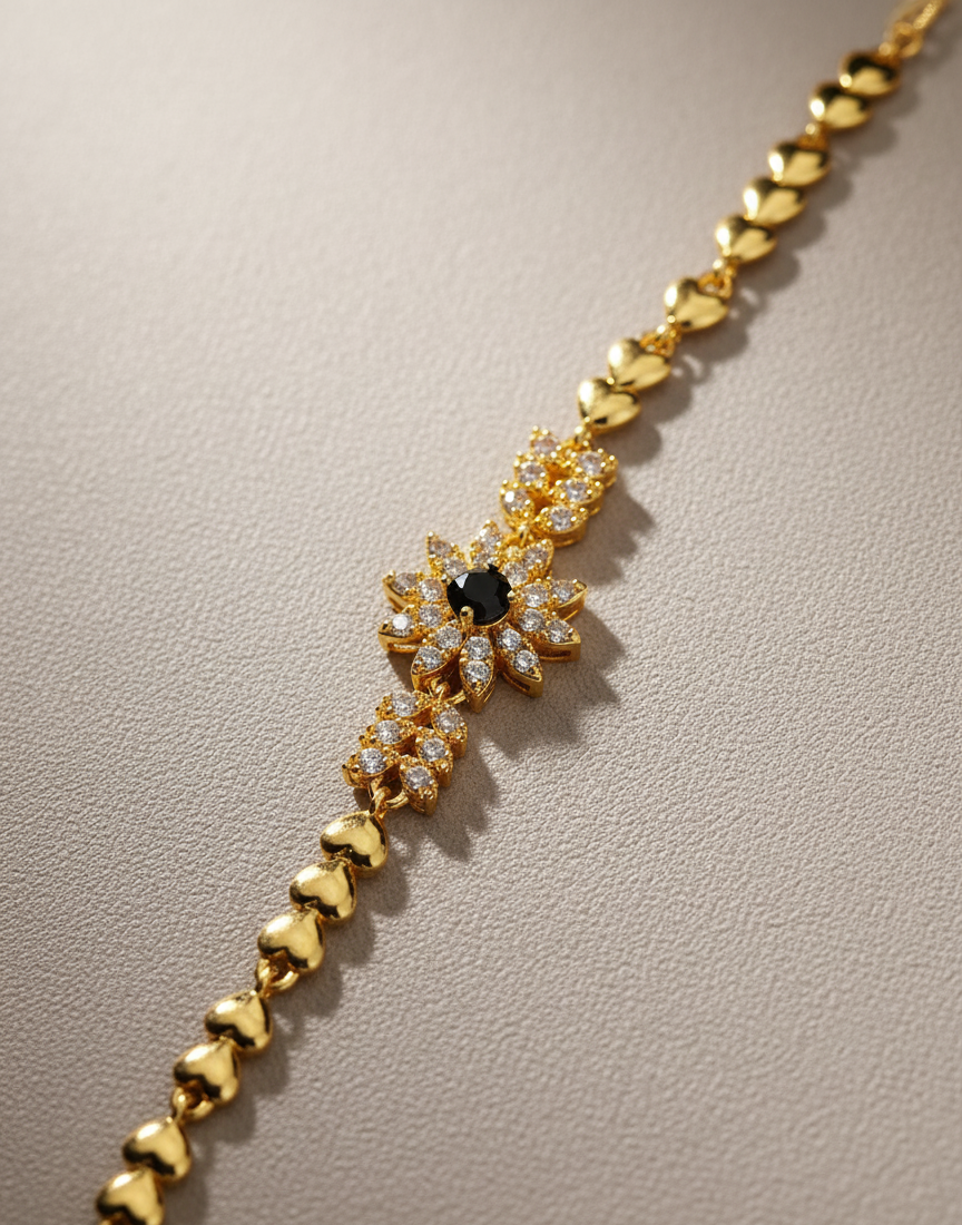 Celebrate love and beauty with this sweet and elegant Floral Blossom & Heart Link Bracelet.