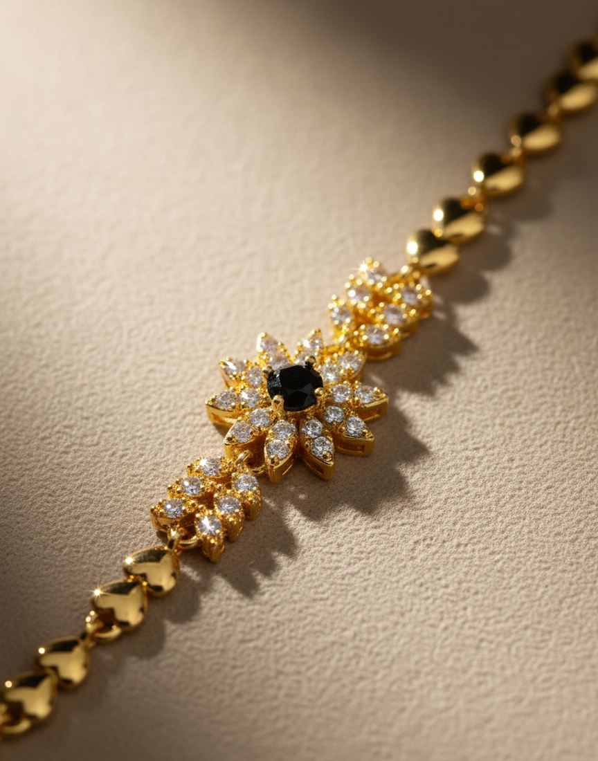 πΈ Romantic Floral Center - A beautiful blossom motif with a dark center gem (Black Spinel/CZ) surrounded by brilliant white petal stones.